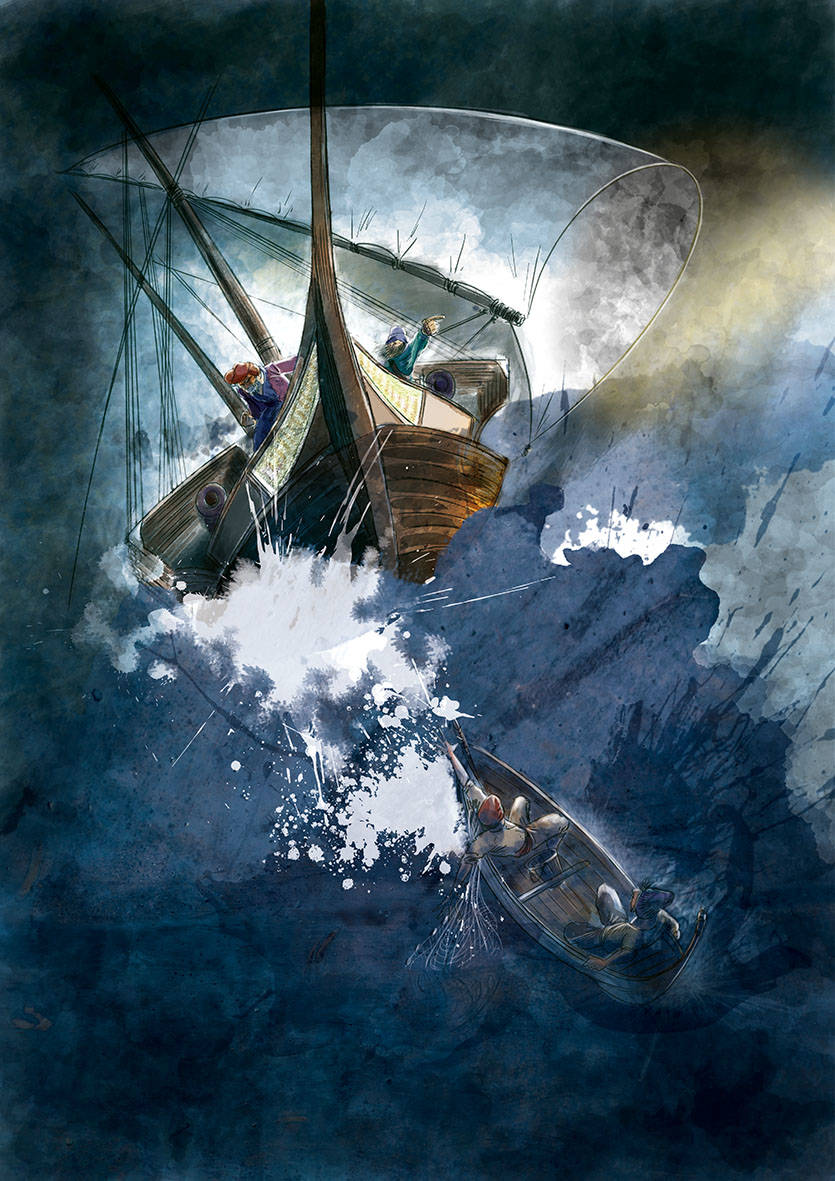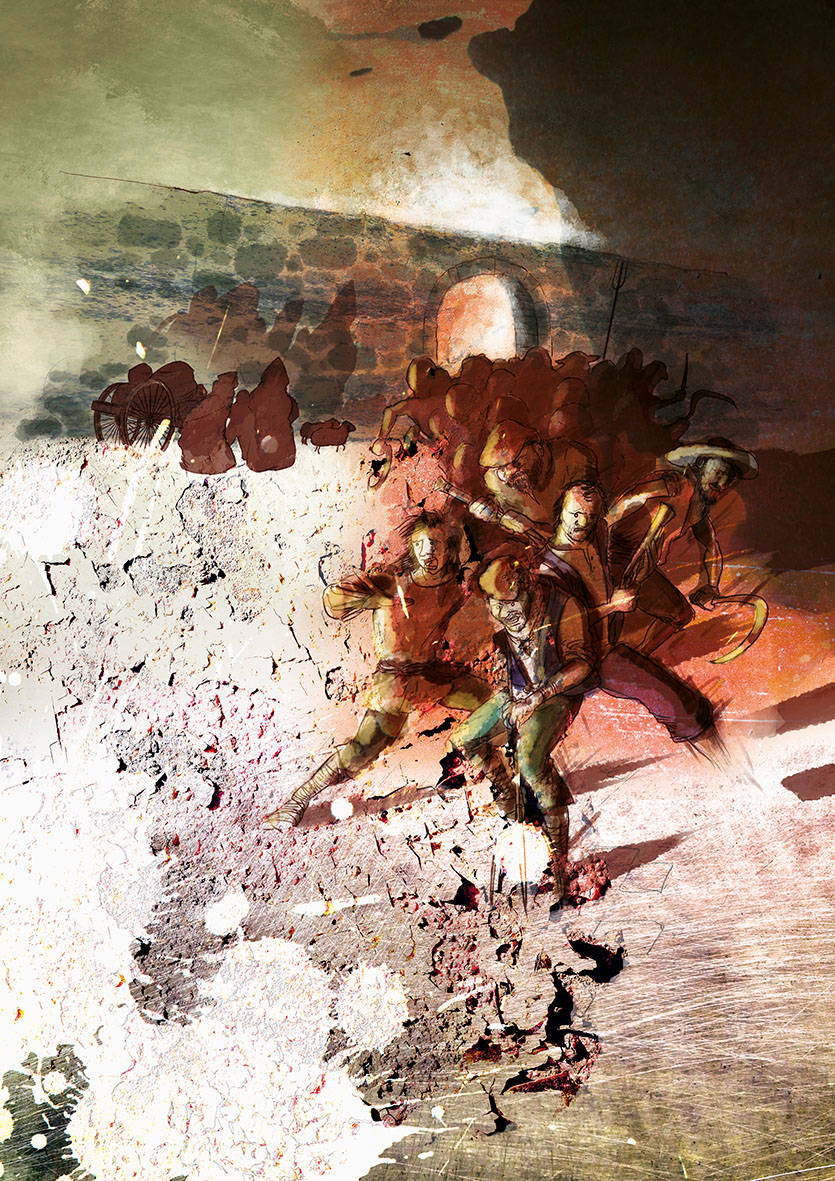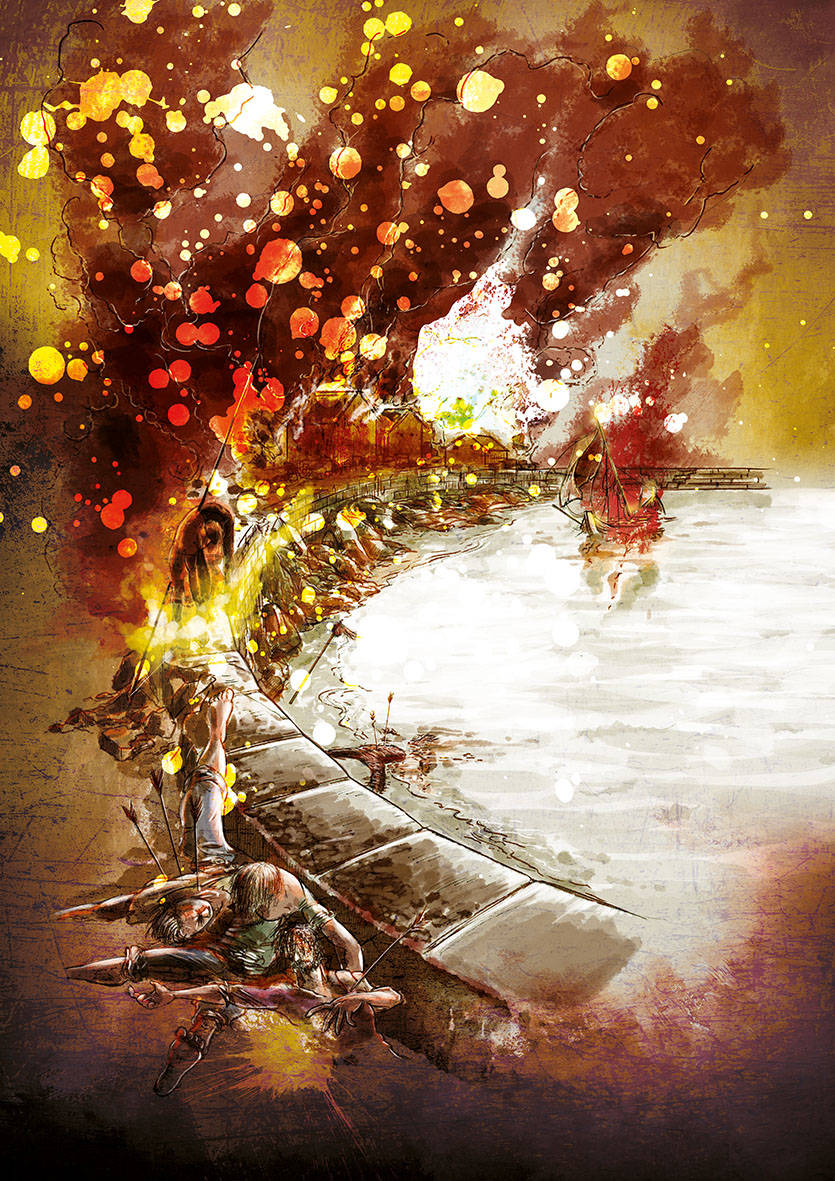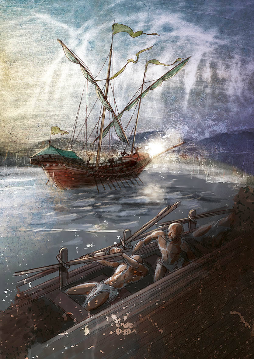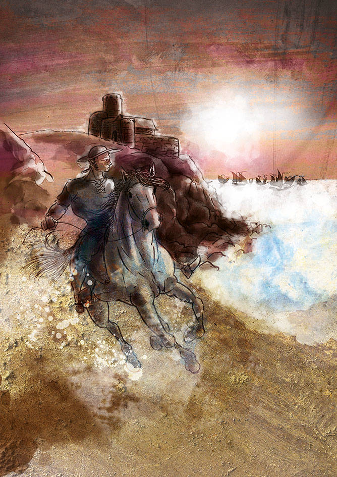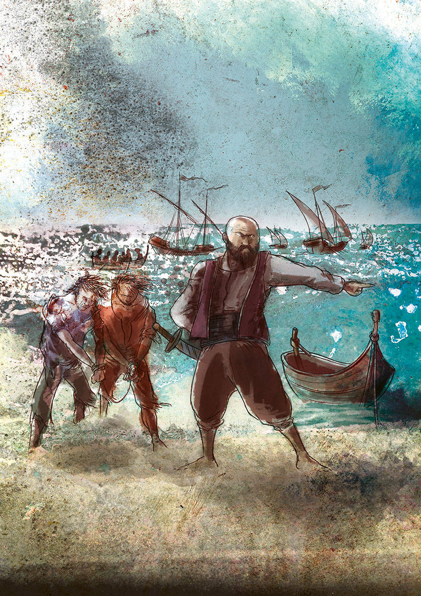 L'i·lustrador Ferran Casellas va ser l'encarregat de recrear a partir del traç i el color, l’assalt dels corsaris comandats pel temut Barba-rossa des d’una perspectiva innovadora, diferent: la il·lustració muda com vehicle explicatiu, adreçada especialment al públic infantil.