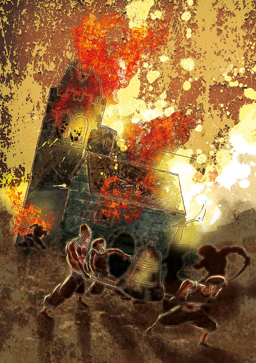 ."Portaren-se’n las campanas de la iglésia y cremaren las casas de Sanct Joan, la capella de Nostra Senyora de Gràcia y se’n portaren las campanas, cremant fins a la torra de mosèn Ribas"