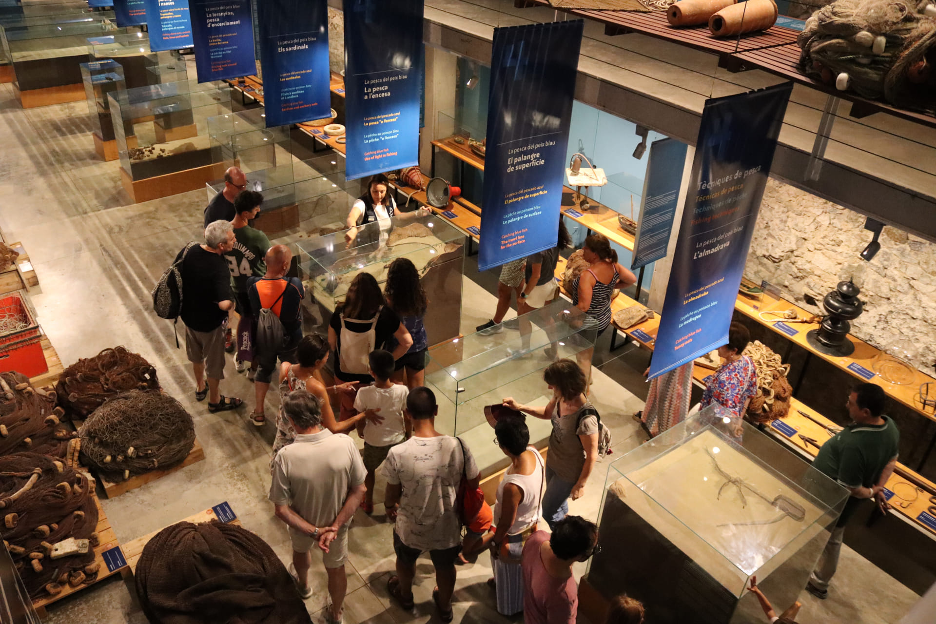 A través de un prólogo audiovisual y de 5 ámbitos, la visita guiada descubre diferentes aspectos del oficio de la pesca, de sus orígenes milenarios hasta la actualidad: los peces de nuestro mar, los espacios de pesca, los oficios relacionados con el mar, la vida cotidiana de los pescadores, las embarcaciones, los aparejos, las técnicas y la tecnología, y muchos más temas apasionantes.